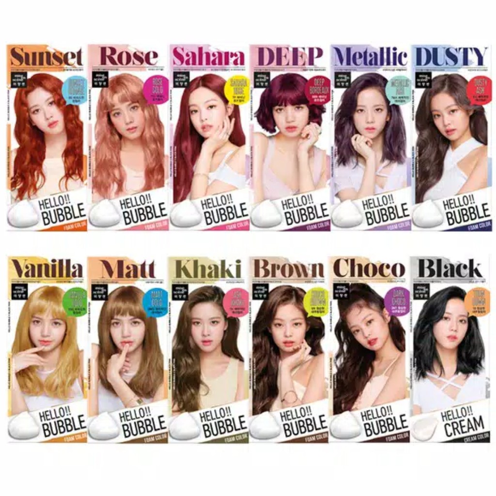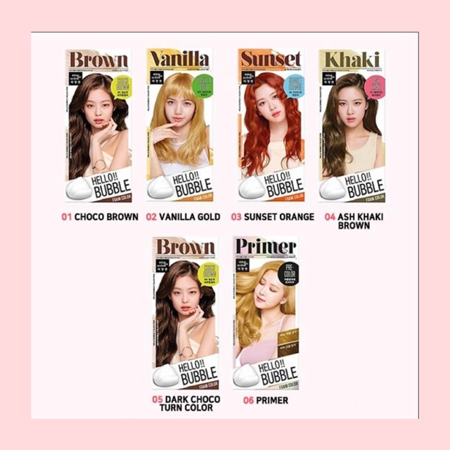 From autumn warm to summer cool and winter crisp colour tones Hello Bubble offers a wide range of trendy colours. Sekarang telah hadir Hello Bubble Dye hair colour Blackpink Edition yang sangat populer lho berikut penjelasannya dan cara pemakaiannya Cat rambut foam seperti shampoo yang mudah digunakan tidak perlu repot repot ke salon. Ammonia-free foam hair dye contains a secret magic ampoule that makes hair soft smooth and sweetly scented.